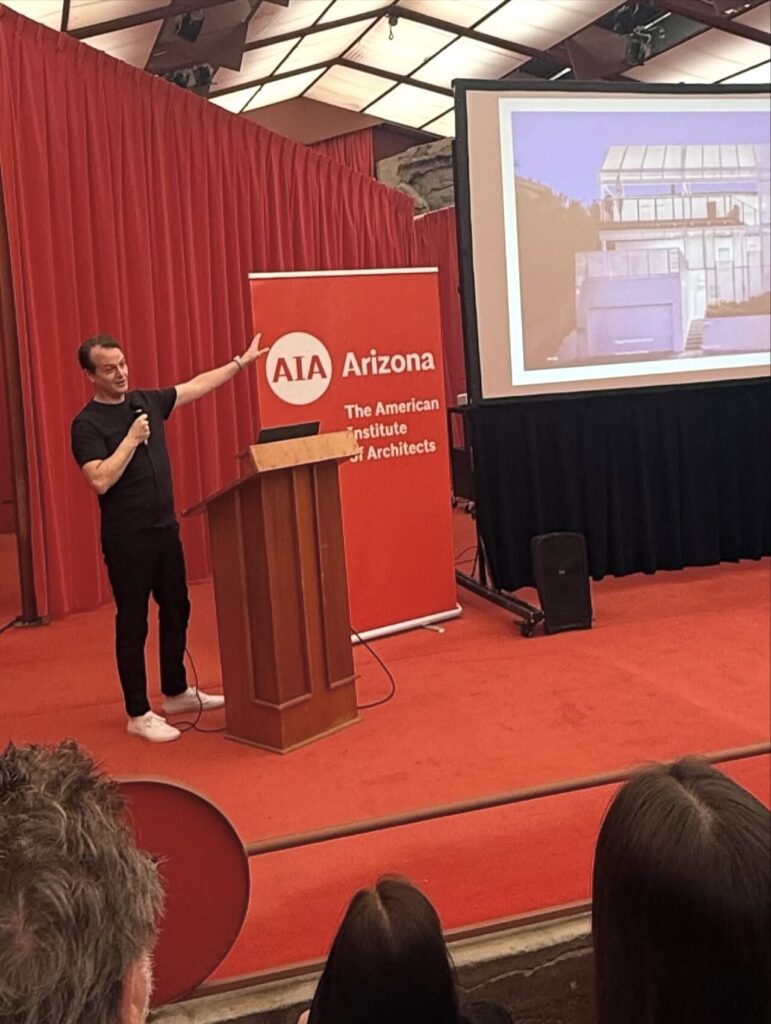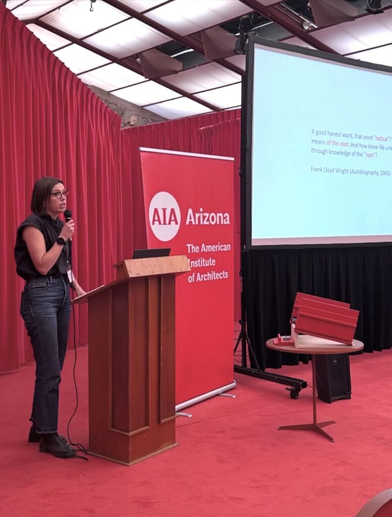 Presentations concluded with a discussion focused on Taliesin West restoration and preservation with Rebecca BarronDirector of Preservation at the Frank Lloyd Wright Foundation; Evan Emery, AIA Arizona Allied Member, and Designer / Fabrication Specialist at 180 Degrees Design + Build; and Guillaume Evain, Assoc. AIA, Design Director at 180 Degrees Design + Build.