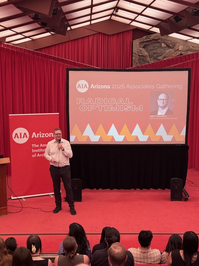 Attendees also heard from 2026 AIA Phoenix Metro President Andrea Hardy, AIA, Associate Principal at Shepley Bulfinch in Phoenix and Riley Hausman, AIA, Architect at Corgan in Phoenix, who shared insights into the path to licensure and strategies for navigating the ARE exams while highlighting resources available to emerging professionals as they move forward in their careers.