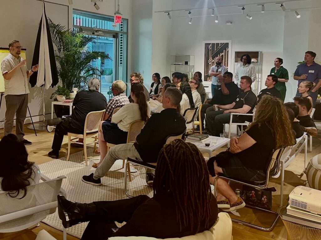The AIA Phoenix Metro Custom Residential Architects Network (CRAN) got off to a great restart at the 2025 kickoff meeting at DWR in Scottsdale, June 26th, with a large number of attendees ranging from architecture students to AIA Fellows. AIA Phoenix Metro President Sue Gray, AIA, welcomed the audience, and AIA Arizona Executive Director John Czarnecki facilitated the discussion with Nick Mancusi, AIA, and Amit Upadhye, AIA. Attendees discussed programming possibilities tailored to residential architects.