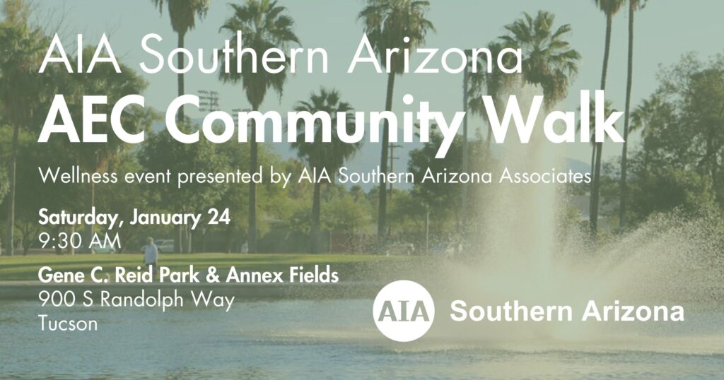Join AIA Southern Arizona on Saturday, January 24 to kickstart the new year at our Associates Wellness event with an AEC Community Walk at Gene C. Reid Park! It is sure to be a morning of fun, wellness and community.