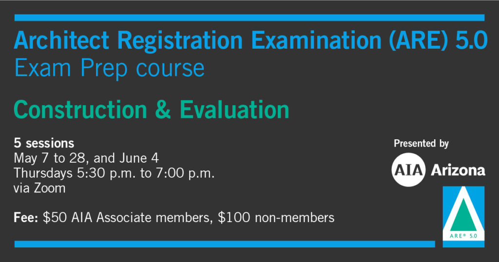 AIA Arizona Associate Members, join us for this Prep Course on the Construction & Evaluation exam. This is a great opportunity for learning and connecting with those also preparing for their ARE exams!